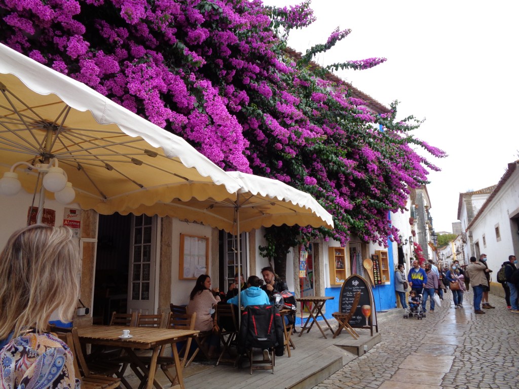 O labirinto de ruas com casinhas brancas e azuis confunde-se com as janelas e portadas floridas a fazer lembrar que talvez a Primavera tenha escolhido Óbidos para lá morar todo o ano!