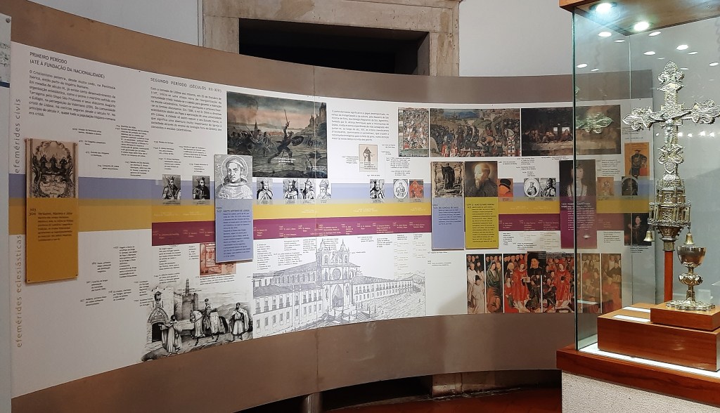 Subindo ao primeiro piso chegamos à Portaria, entrada nobre do mosteiro e um dos espaços de maior beleza, ricamente decorado com mármores, azulejos e pinturas no teto. Na sala seguinte está patente uma exposição sobre a Igreja Lisbonense e os Patriarcas.
