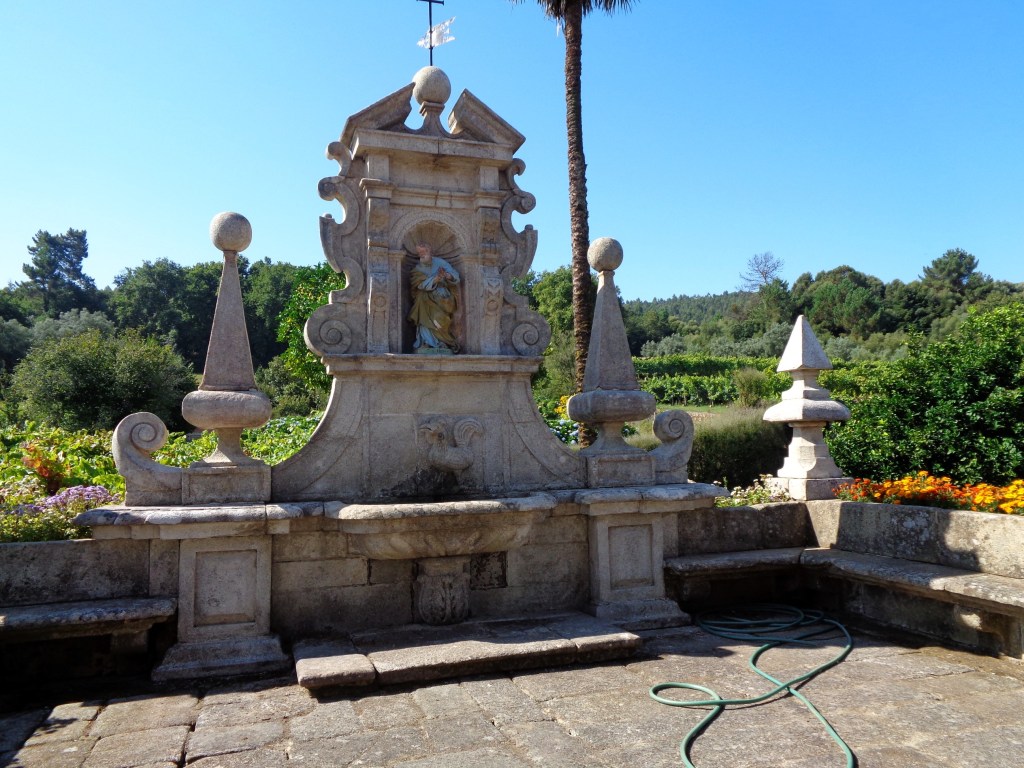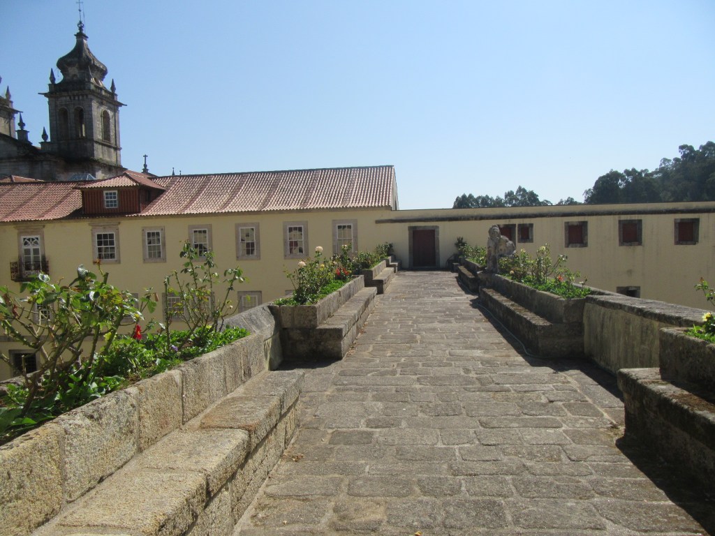 Saindo para o exterior, fomos dar um passeio pela Cerca do Mosteiro de Tibães que faz parte integrante do complexo e é delimitada por um muro com quase 3km de extensão. Dentro da Cerca produzia-se tudo o que era necessário para a manutenção da comunidade como sendo, frutas e legumes, linho, caça, lenha e madeira para construção e a alimentação para os animais. Também havia um moinho de pão, o engenho do azeite e a serração. Os monges, para além de trabalharem muito nestes campos, também usavam estes caminhos agrícolas para meditação e lazer.