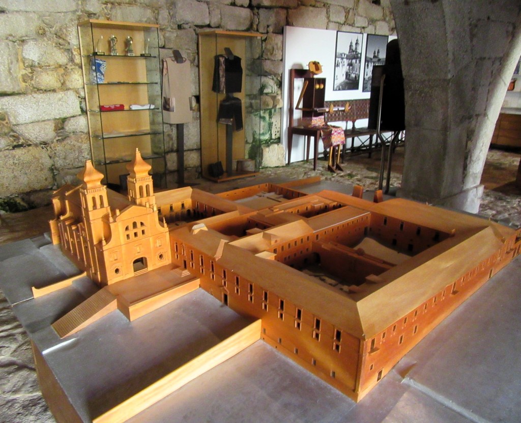 A entrada no mosteiro remete-nos para a zona da receção e loja (antigamente a cavalariça) onde se podem observar alguns vestígios destruídos, assim como uma maquete do mosteiro e um conjunto de bonecos de pequena escala recriando a Procissão de São Sebastião ou Procissão do Cerco que se realiza anualmente na tarde do 2º domingo de Agosto.