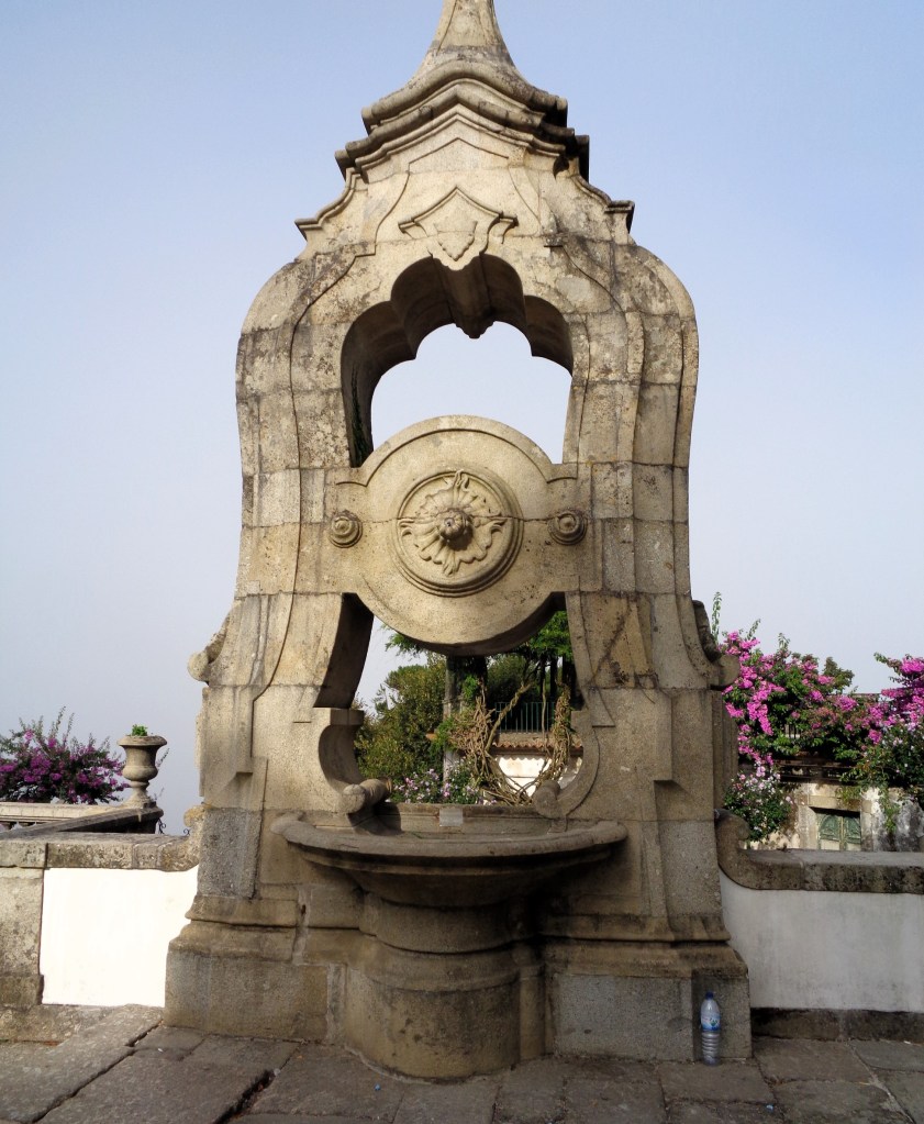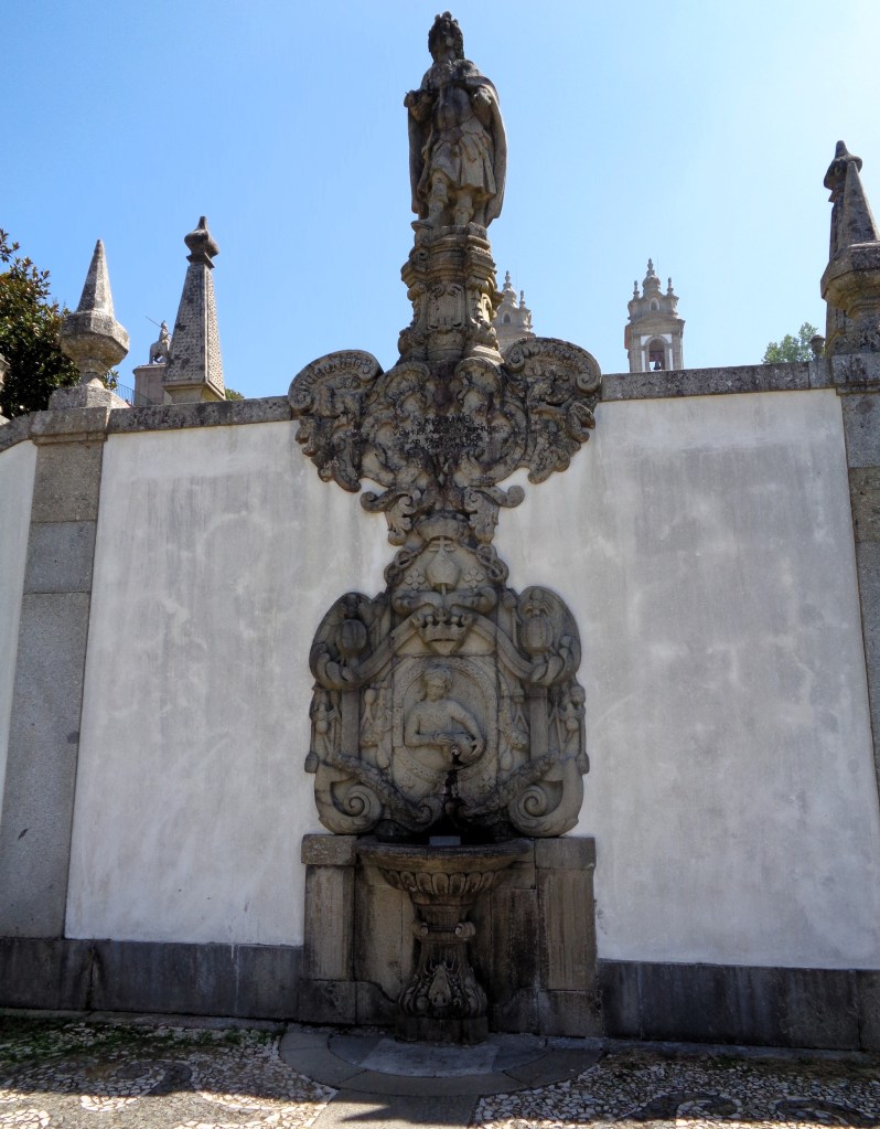 A partir daqui e durante os próximos 104 degraus, vamos percorrer o Escadório dos Cinco Sentidos. Cada uma das cinco fontes está associada a três personagens do Antigo Testamento.