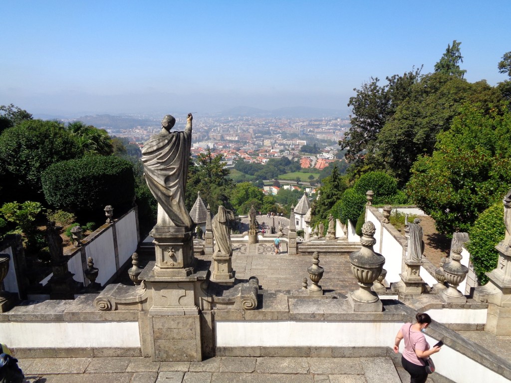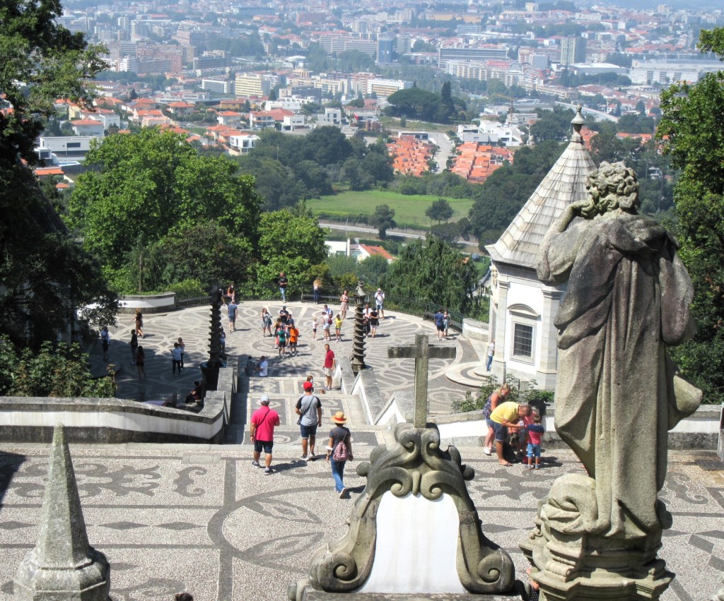 Depois de percorridos 376 degraus chegamos a um pátio circular com duas capelas laterais e que serviu em tempos como zona de descanso dos peregrinos. Este é também o primeiro miradouro com vistas deslumbrantes para a cidade de Braga.
