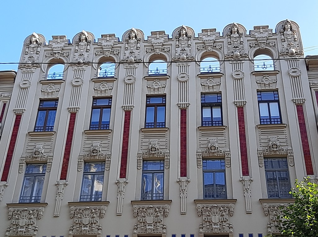Vamos então passear pelo Centro Histórico de Riga, que é Património Mundial da UNESCO desde 1997. Começámos por dar um passeio pela Rua Alberto (Alberta Iela) e arredores, onde existe uma grande concentração de edifícios Art Nouveau, cujos pormenores arquitetónicos vale a pena observar. De notar que Riga é a cidade com maior concentração de arquitetura Art Nouveau do mundo, sendo um terço dos seus imóveis construídos bom base neste estilo.
