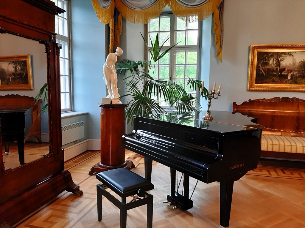 Mas o parque tem outros atrativos: há quatro mansões aqui localizadas e nós fomos visitar uma delas. A Mansão Palmse, uma das maiores mansões barrocas da Estónia, existe como propriedade senhorial desde 1510. Até 1919 pertenceu à família Pahlen, uma rica família nobre do Báltico. A propriedade foi restaurada em 1730 depois de ter sofrido um grande incêndio durante a Grande Guerra do Norte.